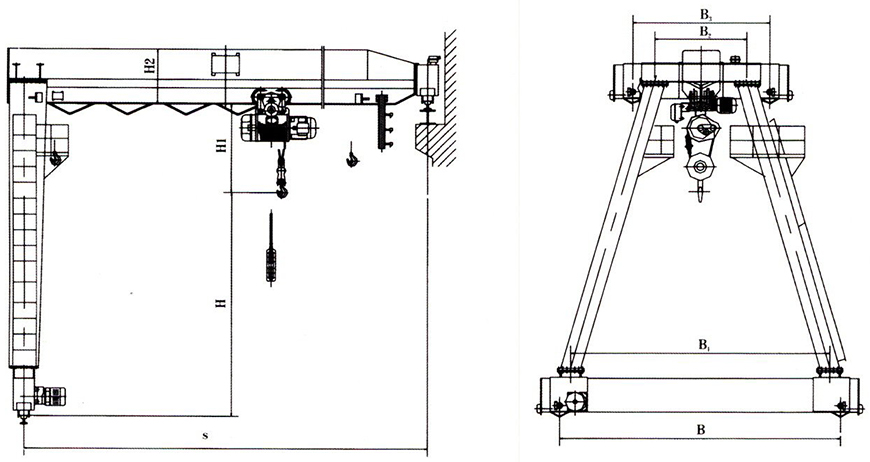 產品介紹:一、產品介紹: 半門式起重機,又叫半龍門吊,是針對中小起重量(1-20t)、中小跨度(7.5-22m)設計制造的一款具有超高性價比的門式起重機,適用于具有一側承重梁的室內或室外。 與...