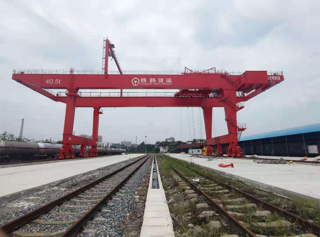 軌道式集裝箱龍門吊主要用于集裝箱鐵路轉運場和大型集裝箱儲運場的集裝箱卸載、搬運和堆放。