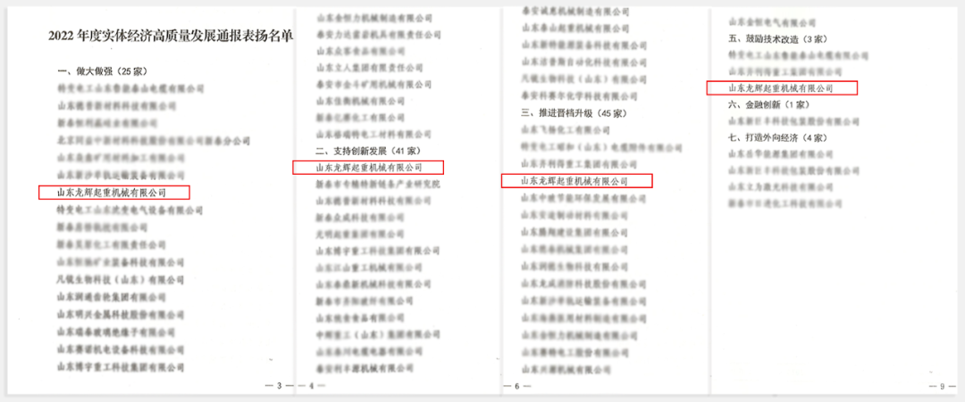 山東龍輝起重機械有限公司凝心聚力、積極作為,共有7項工作獲得我市支持實體經濟高質量發展財政激勵政策中四項獎勵,獲獎類別及單項數量列全市第一,資金獎勵列全市第三。