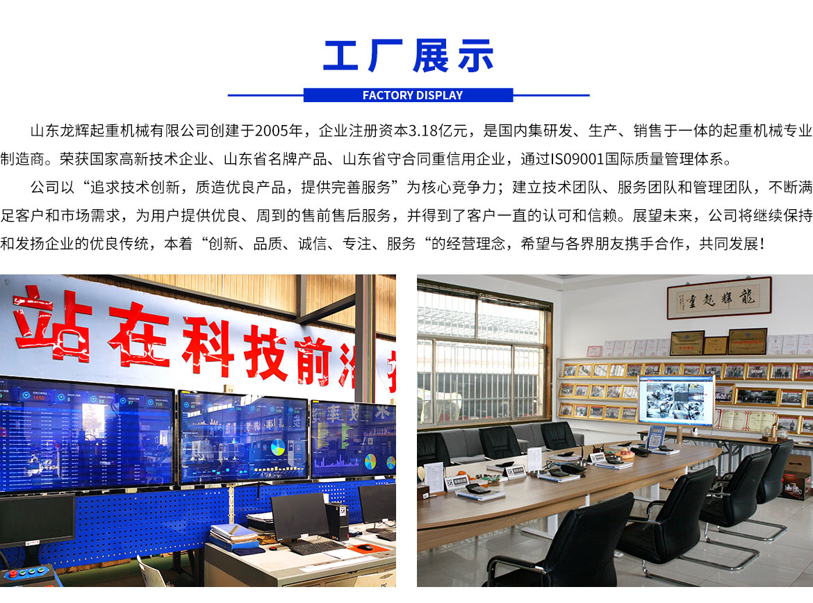 更多詳情點擊網站首頁頭部的全景參觀VR視頻,內有龍輝起重一廠、二廠,市區集團總部全景視頻,企業資質視頻版,企業央視新聞素材等內容。